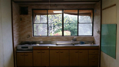 レンジフードを取り付けるスペースがなかったので、従来の窓を小さくしてスペースを確保しました。